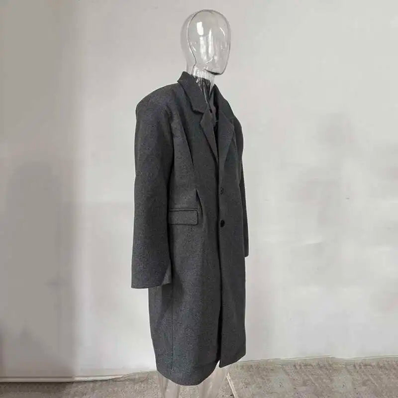 IEFB Korean Style Men's Woollen Coats Single Breasted Solid Color Overknee Thickened Male Windbreakers Spring Tide 2025 9C7831