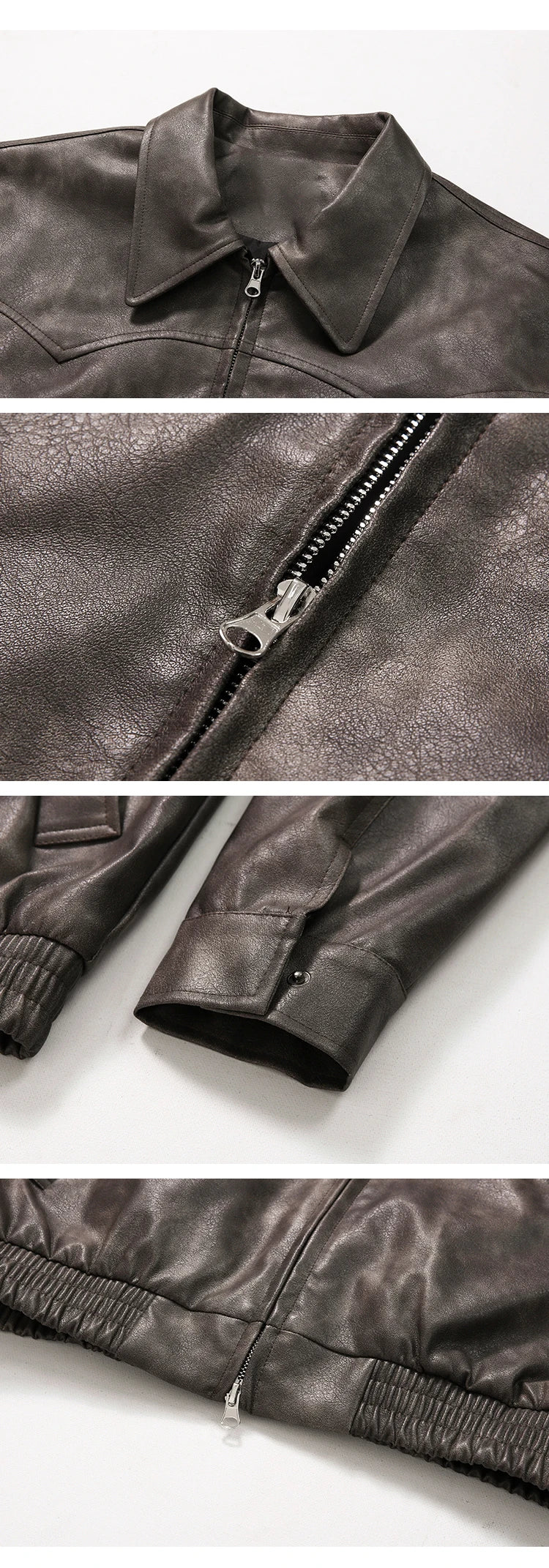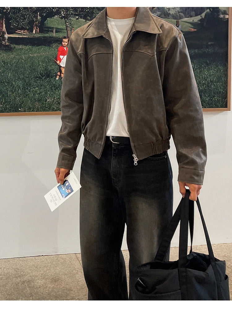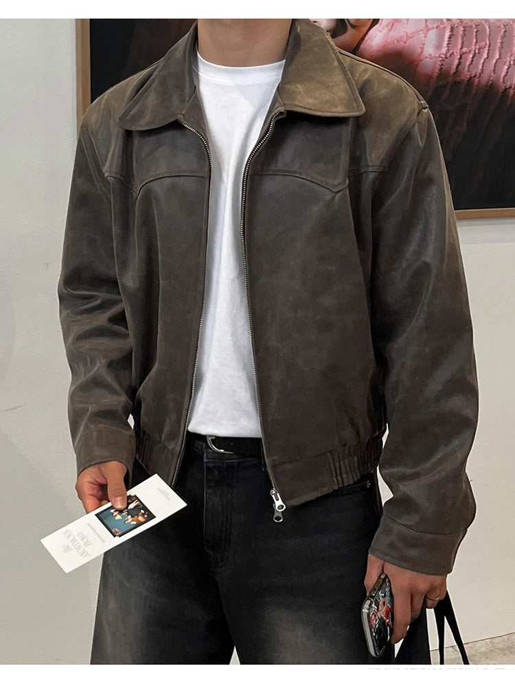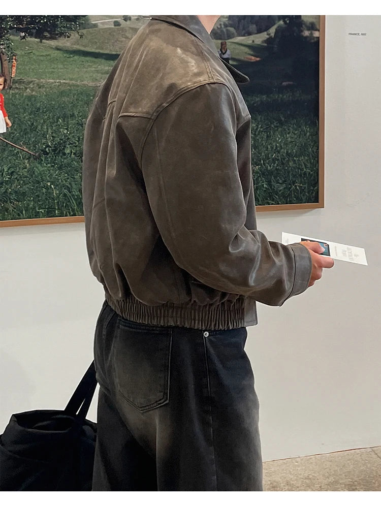 Mauroicardi Spring Autumn Vintage Lightweight Distressed Washed Brown Pu Leather Jacket Men Zipper Casual Korean Fashion Clothes